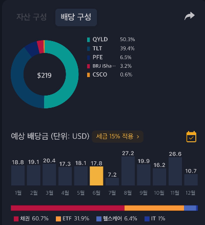 연 5% 수익을 기록해 총 219달러 지급 예정입니다.