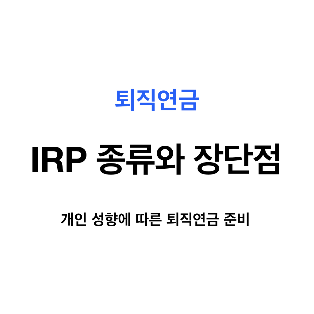 IRP 계좌는 말 그대로 개인이 자신의 퇴직 시기를 대비해 준비하는 각자 준비하는 연금 계좌로 "Individual Retirement Plan"이라는 약자를 통해 잘 알 수 있다. 나라별 다양한 퇴직연금을 두고 있고 한국에서도 운영 방법에 따라 다양한 IRP 계좌가 있지만, 대부분의 IRP 계좌는 알뜰한 절세 혜택을 기본으로 가지고 있으며 운영 방법에 따라 안정적이며 꾸준한 수익을 챙길 수 있기도 하고 리스크에 노출되지만 주식과 같이 높은 수익률을 기대해 볼 수 있기도 하다.