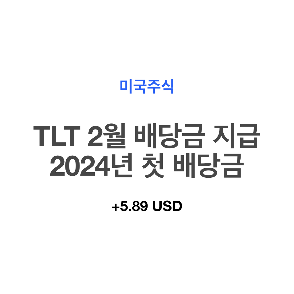 이번 TLT ETF는 현재 월배당 형식으로 배당금(분배금) 지급 중이며 이번 24년 2월에는 주당 약 0.31 달러 지급되어 총 보유한 19주에 대한 배당금 5.89달러 지급받았습니다.